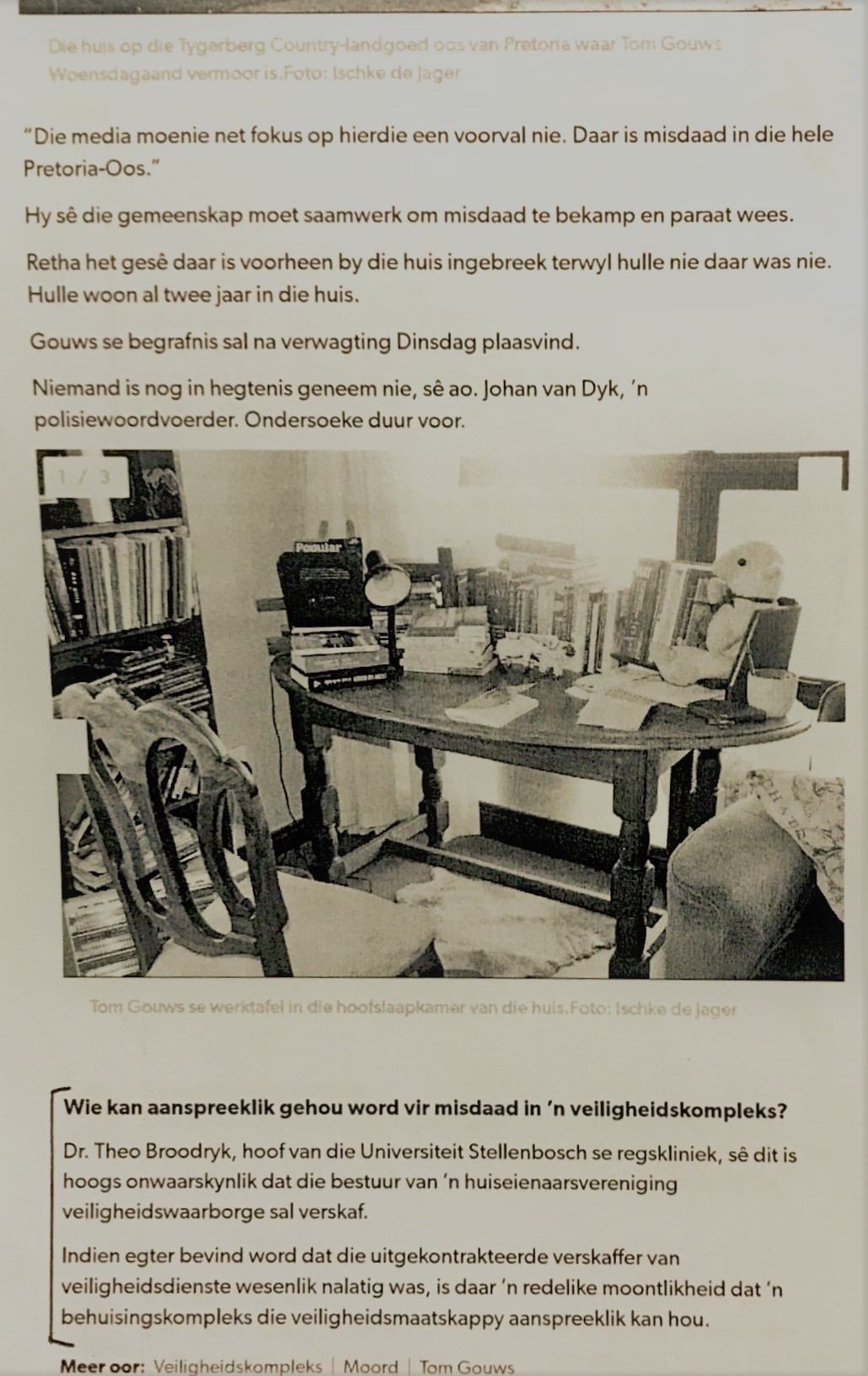 Vrae gevra oor veiligheid in Gouws se kompleks